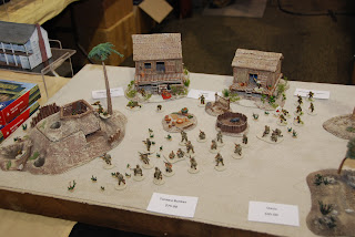 Here is just a shot from Chris at the Sash and Saber table... these are a few dioramas. They've done up a LOT of great 40mm figures, which are just fantastic looking... same footprint as the 28s, but more detail and just some great figures. Doesn't hurt that Chris is a fellow Duke grad, and we can talk basketball and *gasp* even FOOTBALL together!:) Great, great miniatures.